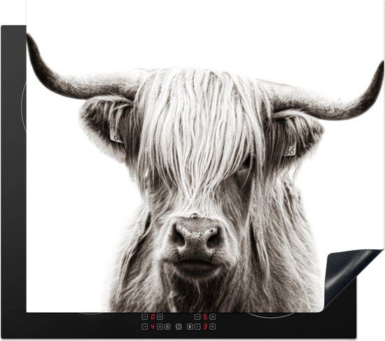 KitchenYeah® Inductie beschermer 59x51 cm - Schotse Hooglander - Wit - Koe - Inductiebeschermer - Kookplaten