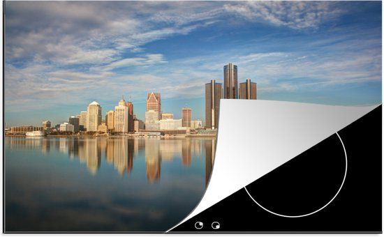 KitchenYeah® Inductie beschermer 77x51 cm - Detroit - Water - Skyline - Inductiebeschermer voor Inductie Kookplaat