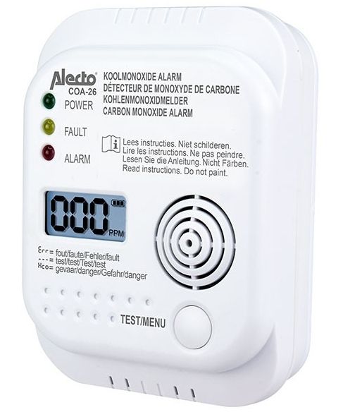Alecto COA-26 Koolmonoxidemelder - CO - Elektrochemische detector - LCD - 85dB - Batterij - AA - Wit - Koolstofmonoxidemelder