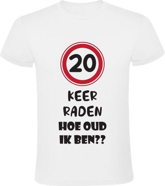 Bekijk product20 keer raden hoe oud ik ben Unisex T-shirt - 5XL - Wit - Kostuumjurken