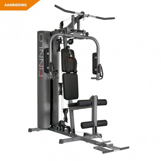 De Finnlo Autark 600 is een fitnessapparaat dat bijzondere aandacht verdient. Ondanks zijn compacte formaat van 115 cm breed, 190 cm diep en 196 cm hoog, biedt dit apparaat talrijke trainingsmogelijkheden. Met zijn gestroomlijnde zwarte design, staat het niet alleen professioneel in elke oefenruimte, maar is het ook gestructureerd om uitgebreide krachttrainingen te ondersteunen. Gelanceerd in november 2015, heeft de Finnlo Autark 600 zijn kracht al bewezen met zijn 177 kg massale gewicht - versterking van de stabiliteit tijdens diverse oefeningen. Zonder twijfel is de Finnlo Autark 600 een uitstekende keuze voor iedereen die op zoek is naar een betrouwbaar en veelzijdig fitnessapparaat.
