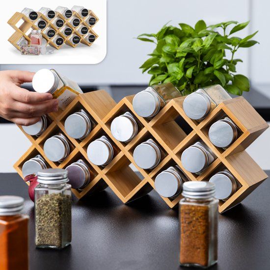 Georganiseerd opbergen – Het bamboe kruidenrek is ruimtebesparend. Door je kruiden in dezelfde potjes in het rek op te bergen, blijft jouw keuken netjes en geordend.