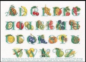 Thea Gouverneur Borduurpakket 2090A Fruit Alphabet - Aida stof 100% katoen - Kruissteekpatronen