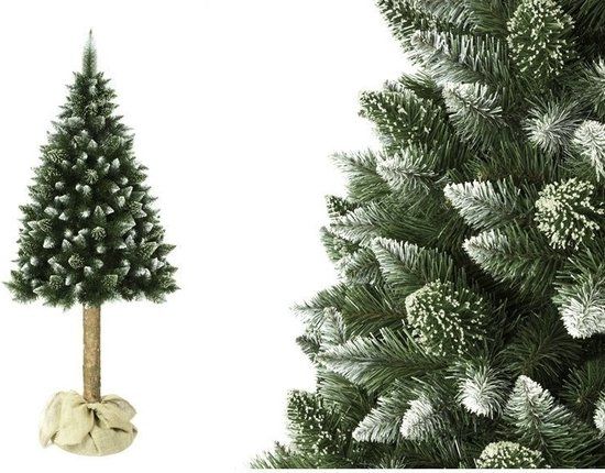 Deze kunstkerstboom is bijna niet van echt te onderscheiden. Door de stam van natuurlijk grenen hout behoud de kunstkerstboom de natuurlijke boomgeur. De takken hebben een hoge naalddichtheid en zijn aan de uiteinden versierd met kristallen, waardoor ze er winters uitzien en voor net dat beetje extra sfeer zorgen in het daglicht.
