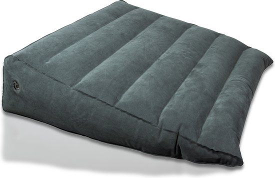 Opblaasbaar en reisvriendelijk: Dit wigkussen is gemakkelijk op te blazen en kan snel worden opgeborgen in de meegeleverde draagtas.
