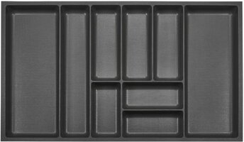 De bestekinzetstukken van de SO-TECH ORGA-BOX 3 worden gekenmerkt door hun esthetische vorm, de nieuwe canvasstructuur en de rechtlijnige vakken. De extra opbergruimte verbetert de organisatiemogelijkheden in een standaardlade aanzienlijk. De afgeronde hoeken in de afzonderlijke compartimenten vergemakkelijken het schoonmaken en zorgen voor een hoge stabiliteit.