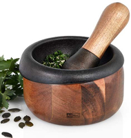 AdHoc Crush Vijzel & Stamper - Zwart - Acaciahout & Gietijzer - Ø 13 cm - Lakzegels