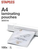 Staples Laminating Pouches - Keycard Size, 65 x 95 mm, 125 micron, Glossy