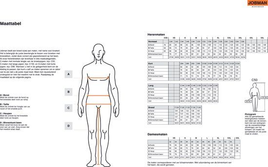 - Broekspijpen van maten 42 -64 kunnen met 5cm worden verlengd