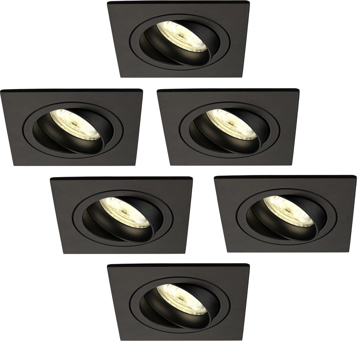 LEDVION Sevilla Inbouwspot - 6-Pack - Zwart - Vierkant - 5W - 2700K - Dimbare LED - LED-verlichting