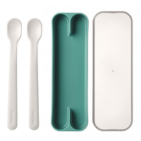 De voedingslepel MEPAL Mio in Deep Turquoise is nu speciaal verkrijgbaar voor hongerige baby's. De lepel wordt geleverd als een set van twee in een praktische opbergdoos. Dus makkelijk mee te nemen als je op pad bent! De babylepel is smal en plat, zodat zelfs de allerkleinsten zonder problemen kunnen eten of gevoed worden. Dankzij de lange steel kan zelfs het laatste beetje babyvoeding uit de pot worden gehaald. De lepels kunnen na gebruik in de vaatwasmachine worden gereinigd en zijn uiteraard BPA-vrij. Productdetails Set van twee inclusief praktisch opbergdoosje BPA-vrij Vaatwasmachinebestendig Kleur: Diep turkoois