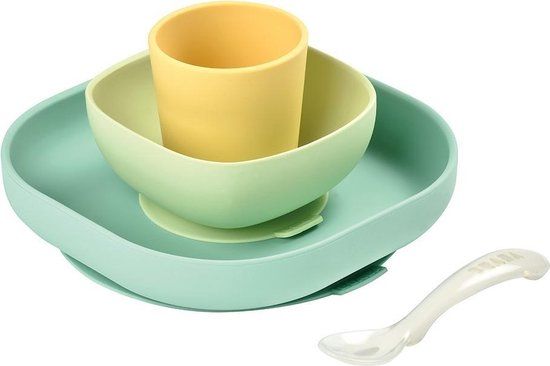 Béaba Siliconen Eet Set met Zuignap Geel - Lepels