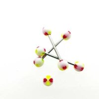 Stalen Tongpiercing met Acryl Hartjes in Groen en Rood