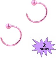 Fako Bijoux® - Neuspiercing - Open Ring Bal - 8mm - Roze - 2 Stuks - Lichaamssieraden