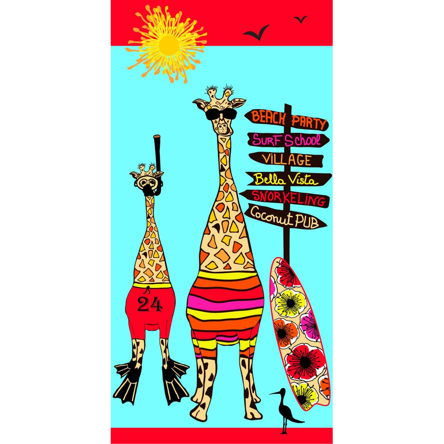Le Comptoir Luxe badlaken/strandlaken handdoek 70 x 140 cm giraffe print - Handdoeken