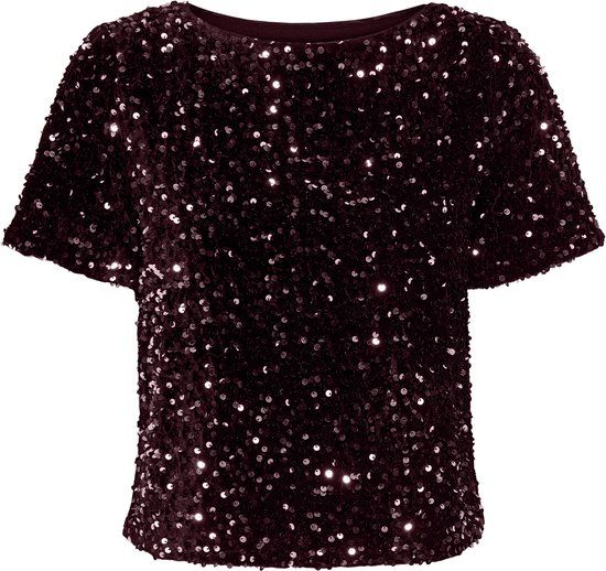 ONLY Onlanika Ss Sequins Boat Top Wvn 15358489 - Bordeaux - L - Lovertjes