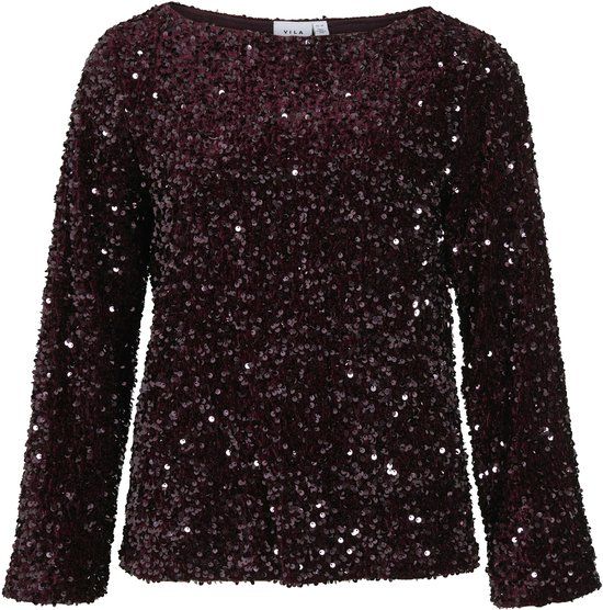 VILA - VIFAITH BOAT NECK L/S SEQUIN TOP/2 - Fig - XS - Lovertjes