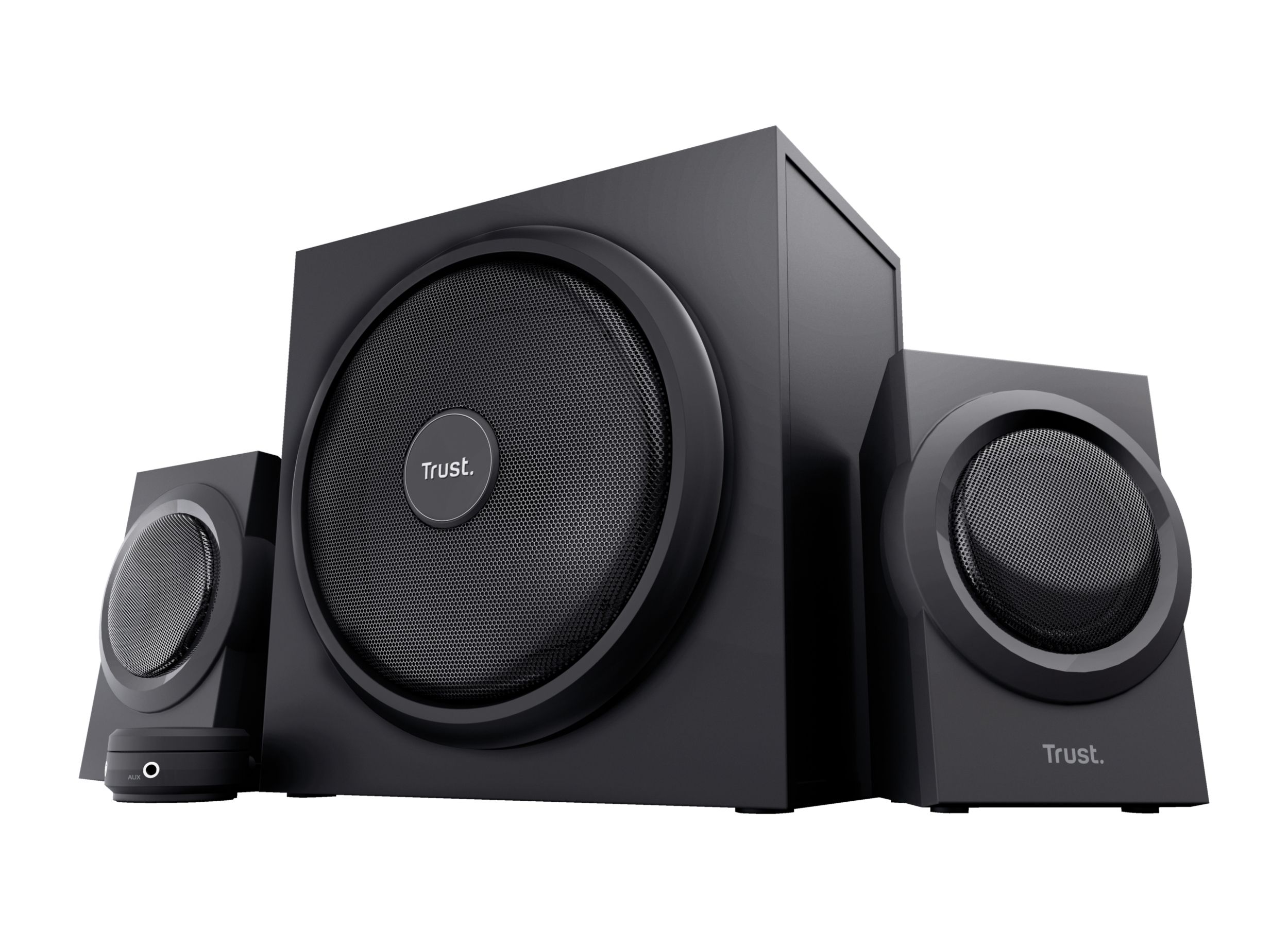 Klein maar erg fijn setje waar flink wat geluid uitkomt! De bass is apart af te stellen op de sub waardoor je de overlast bij buren kan minimaliseren haha! De 2 boxjes zijn ook klein en makkelijk kwijt te krijgen op je bureau of waar je hem ook mag gebruiken. De volume is op een grote knop af te stemmen waar aux en input voor koptelefoon opzit. Top setje!