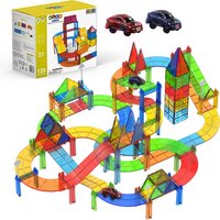 Olvy Magnetic Tiles Racebaan - 126 Stuks - Magnetisch Speelgoed - Magnetische Tegels - Educatief & Constructie - Auto's - Montessori - Bouwstenen - Bouwblokken - Voor 3, 4, 5, 6, 7, 8, 9 Jaar - Bouw je Magna Wereld - Kinderen - Olvy - Magnetisch speelgoed