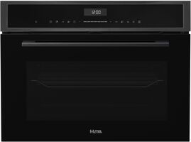 De ETNA CM250TI is een combimagnetron met 50 liter inhoud, ruim genoeg voor grotere ovenschalen en meerdere porties tegelijk. Met een nishoogte van 45 cm past hij in de gangbare 45 cm inbouwnis. De deur opent naar beneden (onder), wat bij plaatsing op ooghoogte een goed overzicht en gemakkelijke toegang biedt bij het in- en uitschuiven van gerechten.