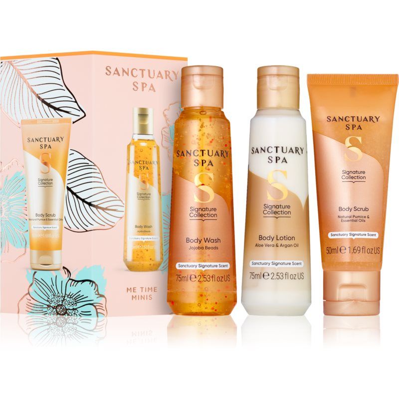 Sanctuary Spa Signature Me Time Minis, , Body Scrub & Peeling voor Vrouwen , Doe jezelf of je naasten plezier met de perfecte cosmeticaset Sanctuary Spa Signature Me Time Minis. Inhoud van de set: Verfrissende Douchegel 75 ml Hydraterende Bodylotion met Aloe Vera 75 ml Gel Peeeling met Glad makende Effect 50 ml Kenmerken: doet elke vrouw plezier bevat miniversies van producten complete routine voor dagelijkse verzorging producten voor diepgaande voeding en hydratatie Ingrediënten: veganistisch product Hoe te gebruiken: Gebruik elk product uit de cosmeticaset volgens de gebruiksaanwijzing.