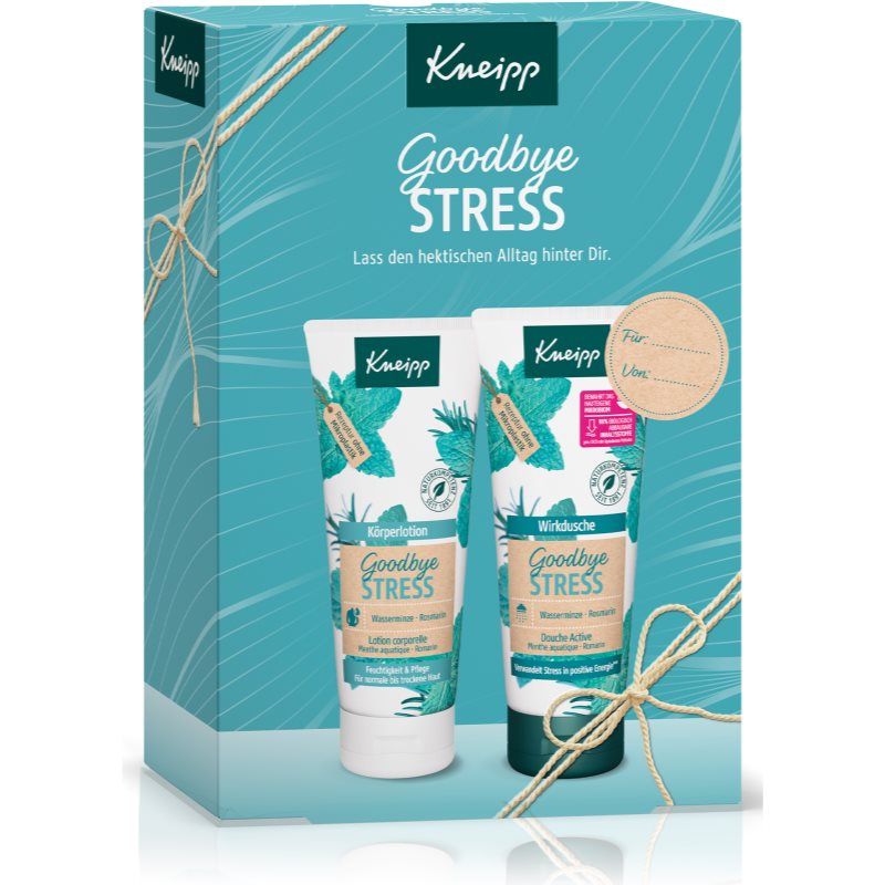 Kneipp Goodbye Stress, 2x200 ml, Cosmetica sets voor Vrouwen , Een speciale gelegenheid vraagt om een speciaal cadeautje, of het nu voor je naaste of jezelf is. De geschenkset Kneipp Goodbye Stress bevat een zorgvuldig geselecteerde, met liefde samengestelde combinatie van geuren en schoonheidsproducten die gegarandeerd een glimlach tevoorschijn toveren op het gezicht van de ontvanger, en je kunt kiezen of ze allemaal tegelijk gaat uitproberen of een voor een in de loop van een hele maand. Inhoud van de set: Kneipp Goodbye Stress Bodylotion 200 ml Kneipp Goodbye Stress Zachte Douchegel met opwekkend effect 200 ml Kenmerken: cadeauverpakking voor complete huidverzorging ruikt aangenaam