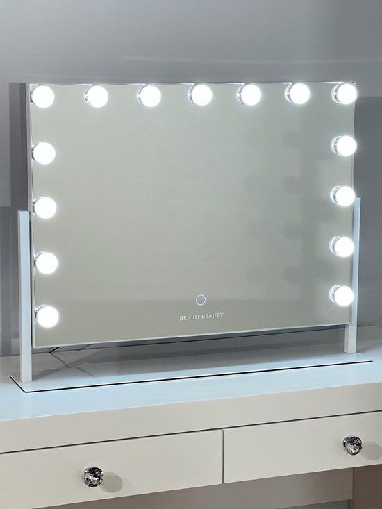 Bright Beauty Vanity Hollywood Make-up Spiegel - 60x50cm - Wit - Met Verlichting - Roteerbaar - Make-upspiegels