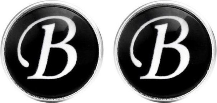 Fako Bijoux® - Manchetknopen - Alfabet - Letter B - Zwart - Unisex - Manchetknopen