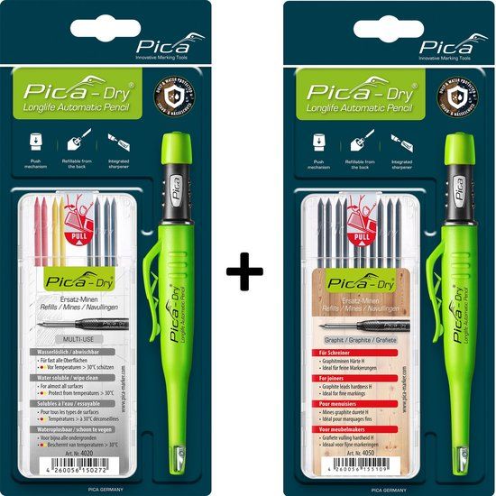 Pica Dry Longlife Automatisch Potlood Voordeelset - 2 x Pica 3030 + 1 x 4020 + 1 x 4050 - Markeermiddelen