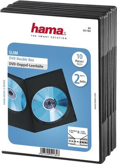 Bekijk productHama DVD Slim Box Dubbel Zwart - 10 Stuks - Tas voor cd's/dvd's - Mediakasten en -rekken
