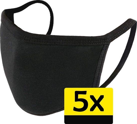 Wasbaar Katoenen Mondmasker Zwart - 5 Stuks - Unisex - One Size - Medische gezichtsmaskers