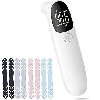 LEYF R-9 Digitale thermometer, koortsthermometer, contactloos, lcd-display met 3 kleurmodi, voorhoofdthermometer voor baby's en volwassenen + maskerhaak, maskerhouder - Medische thermometers