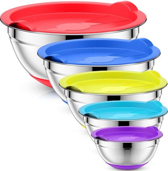 Strex Mengkommen Set 5 Delig - RVS - Mengkom met Deksel - 4.5L - Diverse Kleuren - Mengkommen