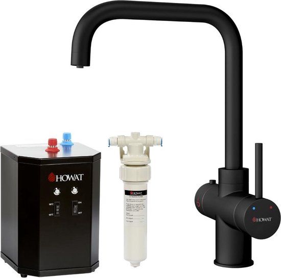 HOWAT 3-in-1 Kokend Water Kraan - Zwart - Incl. Boiler - Mengkranen voor keukengootstenen