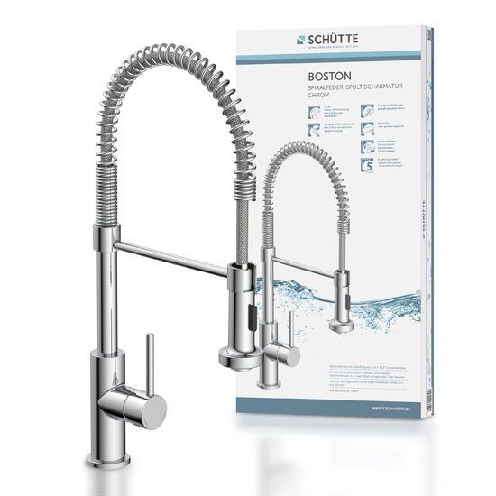 SCHÜTTE BOSTON Design Keukenkraan - Mengkraan - Draaibare Uitloop met Spiraalveer - Chroom - Mengkranen voor keukengootstenen
