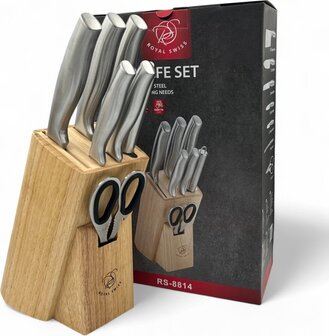 Met deze Royal Swiss® messenset beschikt u over een complete, betrouwbare en stijlvolle oplossing voor al uw snijbehoeften. Perfect voor wie kwaliteit en elegantie in de keuken waardeert.