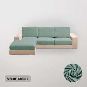 BankhoesDiscounter Knitted L-vorm Zitkussen Hoes - Groen - Bankhoes Stretch - Sofa Cover - Meubelhoezen