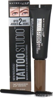 De nieuwste Maybelline gekleurde waterproof wenkbrauwgel voor jou\n- Tot 2 dagen lang gedefinieerde wenkbrauwen\n- Geeft niet af. Vervaagt niet. Waterproof.\n- Gemakkelijk in gebruik; in 3 stappen mooie wenkbrauwen\n- Met wenkbrauwstylingsborsteltje\n- Verkrijgbaar in 6 kleuren: 01 blond, 02 soft brown, 04 medium brown, 06 deep brown, 07 black/brown, 08 black\n\nProductbeschrijving\nDe Tattoo Brow Waterproof Gel 04 Medium Brown is de nieuwste gekleurde waterproof wenkbrauwgel van Maybelline waarmee je jouw onzichtbare of ongelijke wenkbrauwen tot twee dagen kleurt geeft en definieert. De wenkbrauwgel is gemakkelijk aan te brengen met de gel-applicator, waarna je de wenkbrauwen in een handomdraai in model brengt het met meegeleverde wenkbrauwborsteltje. \n\nWaarom het werkt\nMaybelline combineert het gemak van de waterproof wenkbrauwgel met natuurlijk uitziende kleurpigmenten zodat je jouw wenkbrauwen langdurig en gemakkelijk kleur geeft. De langhoudende formule is waterproof waardoor je je geen zorgen hoeft te maken over de kleur van jouw wenkbrauwen als het regent of onder de douche. De Tattoo Brow wenkbrauwgel 04 Medium Brown bevat zowel een gel-applicator als een shapeborsteltje zodat je jouw wenkbrauwen in een handomdraai kleur en vorm geeft.\n\nTip van onze make-up artist\nStap 1: Vul eerst je wenkbrauwen in met de gel. \nStap 2: Borstel de wenkbrauwen door met het bijgevoegde borsteltje voor een natuurlijk ogend resultaat.\nStap 3: De komende 2 dagen geen zorgen meer over onzichtbare wenkbrauwen!\n\nIngrediënten\n[G2014405] [AQUA / WATER ● ISODODECANE ● POLYMETHYLSILSESQUIOXANE ● TRIMETHYLSILOXYSILICATE ● PEG-10 DIMETHICONE ● BUTYLENE GLYCOL ● SILICA ● DISTEARDIMONIUM HECTORITE ● PEG-30 DIPOLYHYDROXYSTEARATE ● GLYCERIN ● LAURYL PEG-9 POLYDIMETHYLSILOXYETHYL DIMETHICONE ● PHENOXYETHANOL ● CAPRYLYL GLYCOL ● TRIETHOXYCAPRYLYLSILANE ● ETHYLHEXYLGLYCERIN ● GLYCERYL POLYACRYLATE ● POLYHYDROXYSTEARIC ACID ● SORBIC ACID ● GALACTOARABINAN ● TOCOPHERYL ACETATE ● TOCOPHEROL ● [+/- MAY CONTAIN CI 77491, CI 77492, CI 77499 / IRON OXIDES ● CI 77891 / TITANIUM DIOXIDE ● ] (F.I.L. D214481/1). RAADPLEEG DE ACHTERKANT VAN DE VERPAKKING VOOR DE MEEST ACTUELE INGREDIËNTENLIJST.