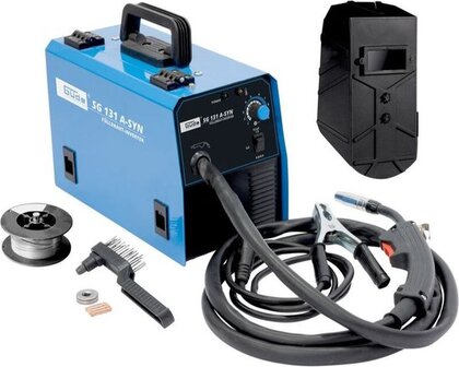 Verplaatsbaar lasapparaat met inert gas met innovatieve lasdraadtechnologie. Eenvoudig en effectief lassen met speciale draad waarin het beschermgas in poedervorm is ingesloten. Ideaal voor incidenteel, kleiner gebruik in de werkplaats en bij montage, omdat er geen gasfles nodig is. Voor gemiddelde materiaaldiktes van 1,5-8 mm. Traploos regelbaar van 20-120 ampère. Ook geschikt voor buitenlassen bij wind, omdat het beschermgas niet kan worden weggeblazen. Direct klaar voor gebruik met aangesloten slangenpakket, aardklem, inclusief 0,45kg lasdraad, 3 vervangende nozzles 0,9mm en een vervangende invoerrol 0,9mm. * voor gevulde draden tot 0,9 mm (kleine spoel) * behuizing van gepoedercoat plaatstaal * thermische overbelastingsbeveiliging * koelventilator * geforceerde koeling * aardkabel met aardklem * slangenpakket met directe aansluiting * staalborstel met slakkenhamer * incl. Rol lasdraad (0,9 mm / 0,45 kg) * incl. Vervangende mondstukken (3 x 0,9 mm contacttip) * incl. Vervangende invoerrol (0,9 mm) * ED bij max. Lasstroom 230V: 10% * traploos instelbare stroomsterkte (20-120) A * MIG lassen met gevuld lasdraad (dus zonder gasfles) * MIG lassen tot een materiaaldikte van 8 mm * Veel gebruikt voor plaatwerk / restauratiewerk * Geschikt voor ijzer en laaggelegeerde staalsoorten  * Alleen gebruiken in goed ventileerde ruimtes