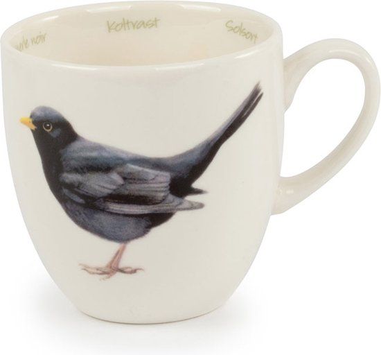 Deze mooie mok is voorzien van fraaie, natuurgetrouwe tekeningen van Elwin van der Kolk en vormt een aanwinst voor elke vogelliefhebber. De mok merel maakt deel uit van een serie van 8 verschillende tuinvogelmokken. De buitenzijde van de mok bevat een tekening van de volwassen merel en aan de andere kant het jong. Aan de binnenkant bevindt zich een prachtige afbeelding van zijn natuurlijke omgeving. Deze mok is vaatwasmachinebestendig.