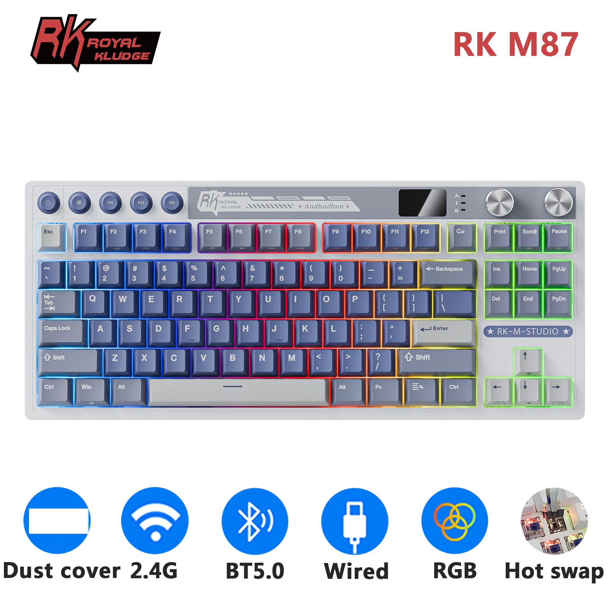RK ROYAL KLUDGE M87 - Mechanisch toetsenbord - Draadloos/Bluetooth/2.4G/USB-C - Hot-swappable - Pakking - Monitoren