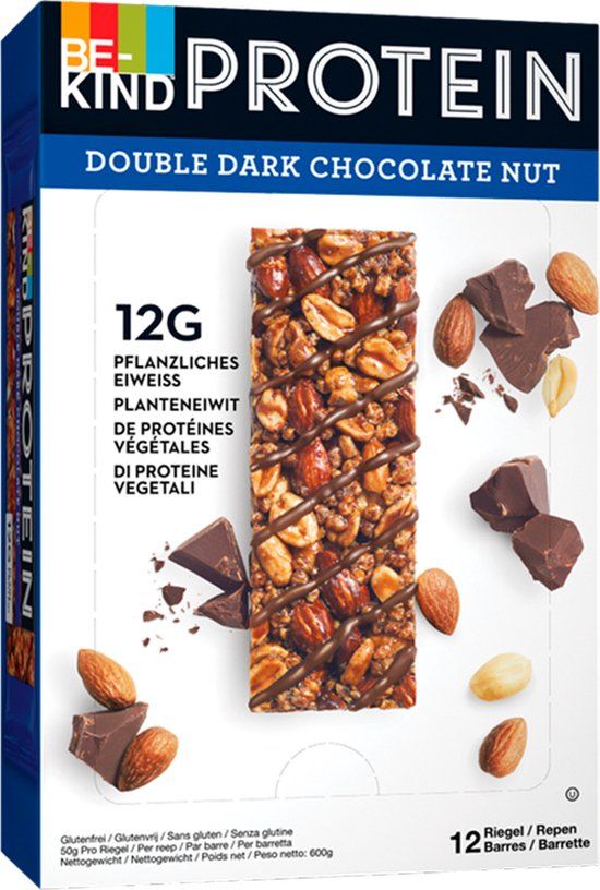 Be Kind Chocolade Proteine Reep Double Dark Chocolate Nut - 12 x 50g - Mueslirepen