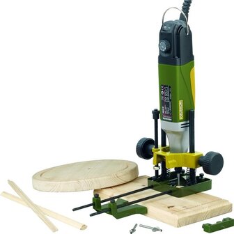 Controle en nauwkeurigheidHet Proxxon Bovenfrees Hulpstuk OFV biedt u de mogelijkheid om uw bovenfrees om te toveren tot een multifunctioneel gereedschap voor diverse freeswerkzaamheden. Het hulpstuk stelt u in staat om nauwkeurige groeven en randen te frezen, randen af te kanten, en cirkels met precisie te maken. Met de geleider en diepteaanslag kunt u eenvoudig de gewenste diepte en positie van uw freeswerk instellen, waardoor het ideaal is voor zowel fijn als zwaar werk.