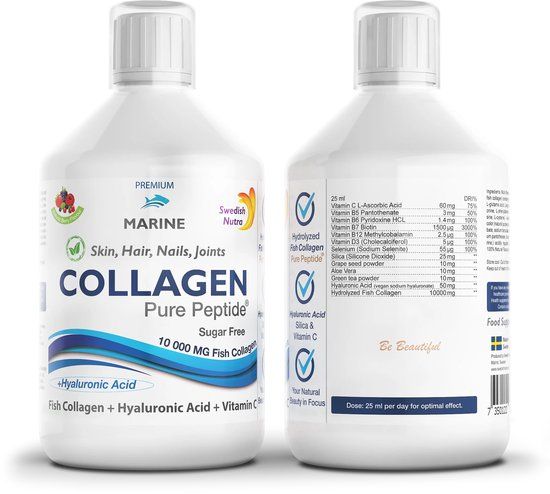 Swedish Nutra - Vloeibare Collageen 10000 MARINE - 500ml - Anti-aging - Huid, Haar & Nagels - Multivitaminesupplementen