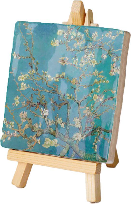 Haal de Hollandse Meesters in huis met Kunsttegeltjes! Dit mini schilderij tegeltje van Van Gogh, bekend als "Amandelbloesem", is een iconisch werk dat je woonkamer een vleugje kunst geeft. Met het meegeleverde houten ezeltje kun je di