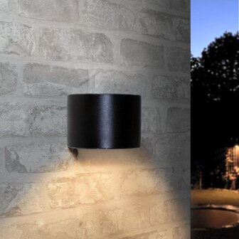 - Solar wandlamp buiten 'Sven' rond - Down light - Warm wit licht - Tuinverlichting op zonne-energie geschikt voor schutting - Zwart