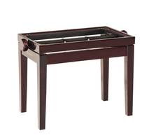 Piano bench wooden-frame. Solid European beech wood, varnished with four coats of polyester. Stable legs with non-slip rubber end-caps. Dual crossbar mechanism for easy and precise height adjustment. The piano bench ships flat and is easy to assemble.