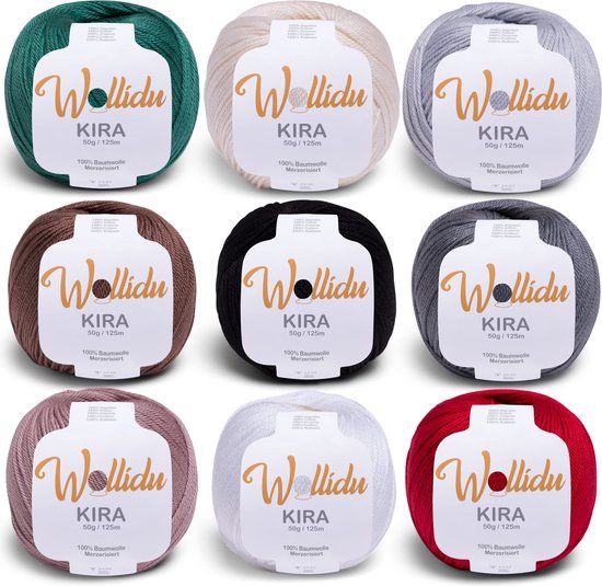 Wollidu Kira 100% katoen voor breien en haken, 9 x 50 g, set haakgaren, breigaren, kleurrijk, kleurenmix 2 - Naaimanden
