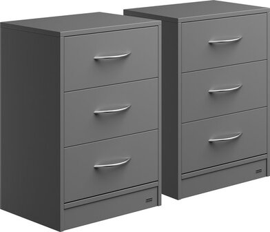 Casaria Nachtkastje Eloise Set van 2 - Led 3 Lades 54x39x28 - Antraciet - Nachtkastjes