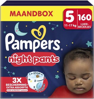 Pampers Night Pants - Maat 5 (12kg-17kg) - 160 luierbroekjes - Maandbox - Nachtluiers